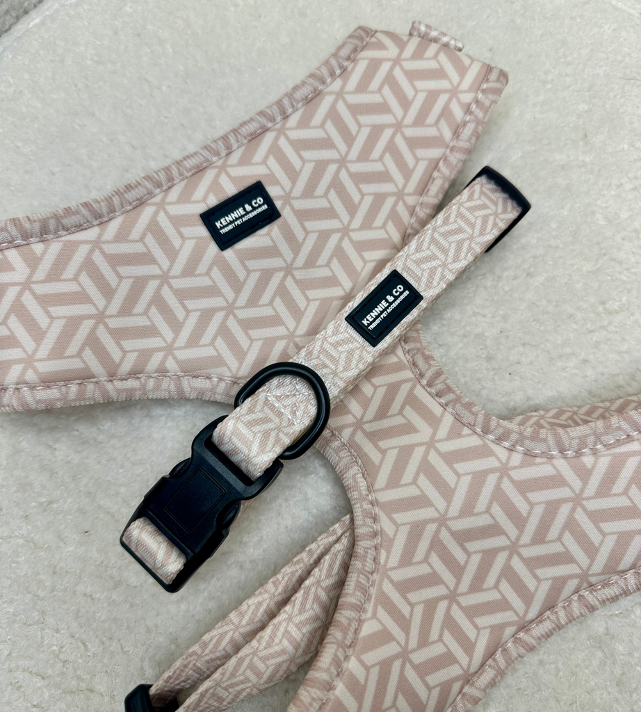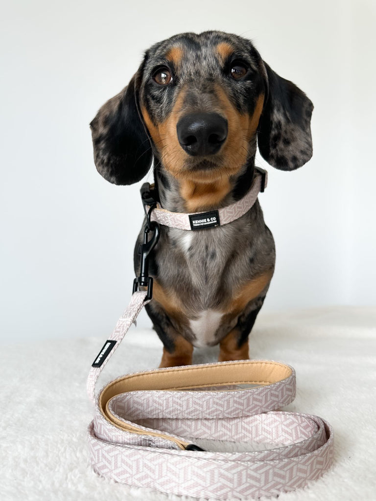 Our Nala Collar features a beige Jacquard inspired pattern and is fully adjustable with a D Ring Attachment for leads.